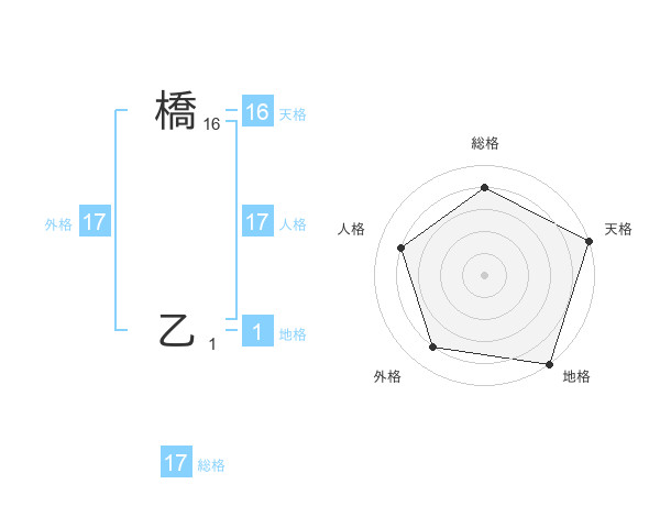 橋 乙さんの人格は17画の4点!