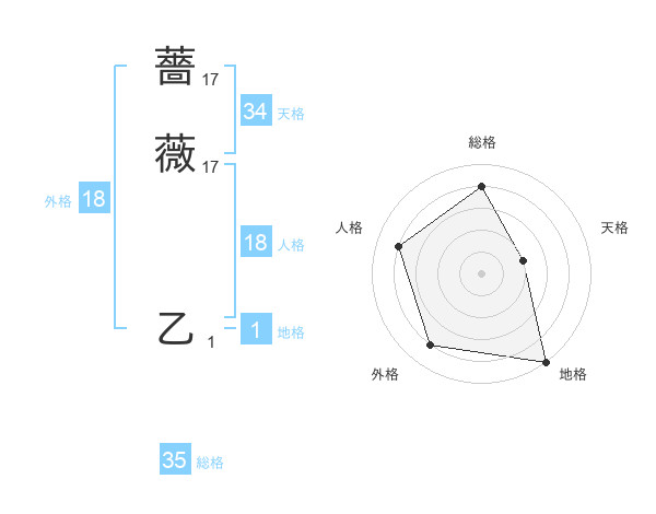 薔薇 乙さんを姓名の画数から五運を鑑定