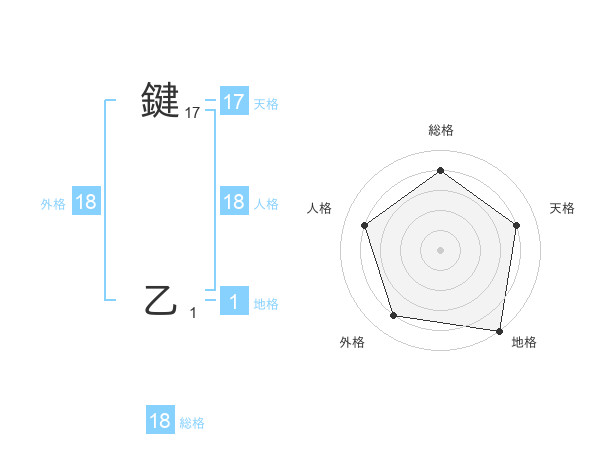 鍵 乙さんの外格は18画の4点!