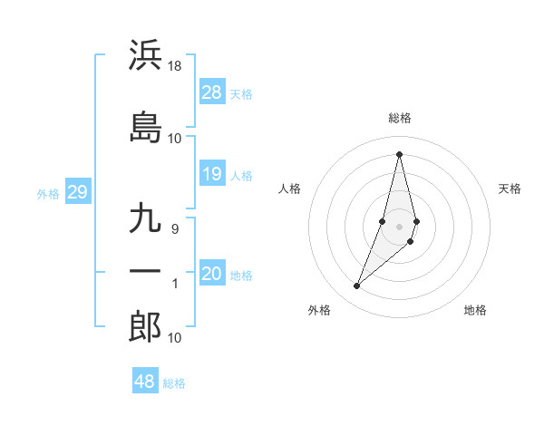 浜島 九一郎さんを姓名の画数から五運を鑑定
