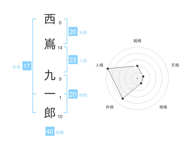 西嶌 九一郎さんの外格は17画の4点!
