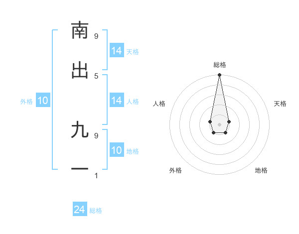 南出 九一さんの総格は24画の5点!