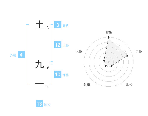 土 九一さんの総格は13画の5点!