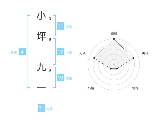 小坪 九一さんの総格は21画の5点!
