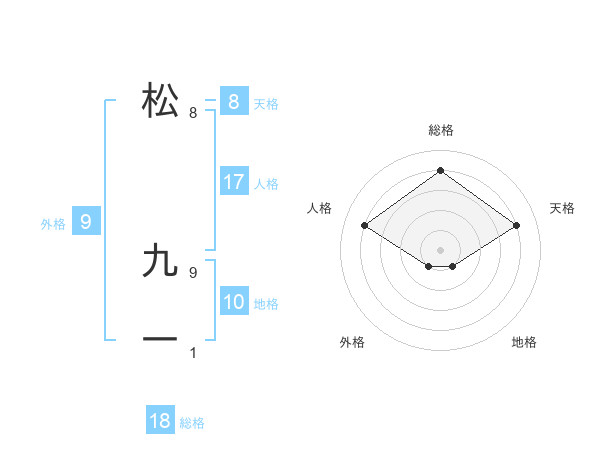 松 九一さんの総格は18画の4点!