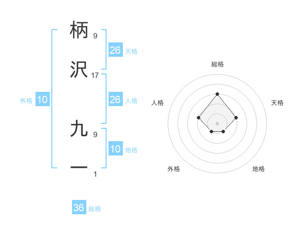 柄沢 九一さんの総格は36画の3点!
