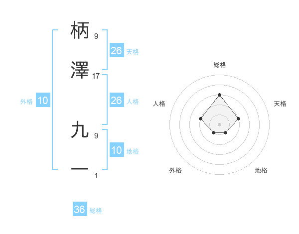 柄澤 九一さんを姓名の画数から五運を鑑定