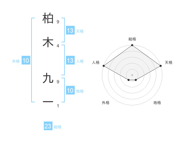 柏木 九一さんの総格は23画の5点!