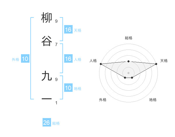 柳谷 九一さんの総格は26画の2点!