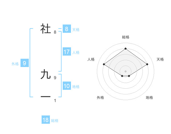 社 九一さんの人格は17画の4点!
