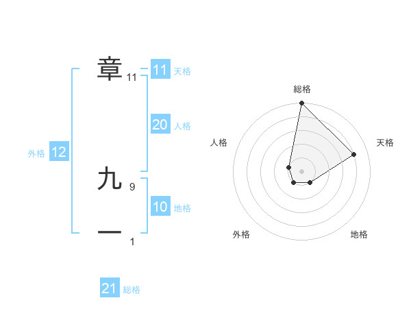 章 九一さんの総格は21画の5点!