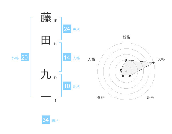 藤田 九一さんの天格は24画の5点!
