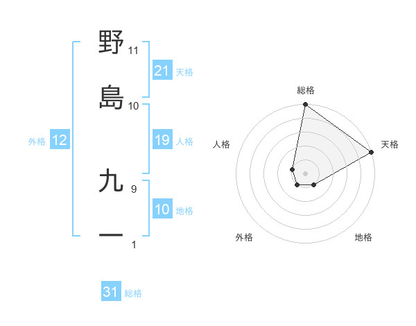 野島 九一さんの天格は21画の5点!