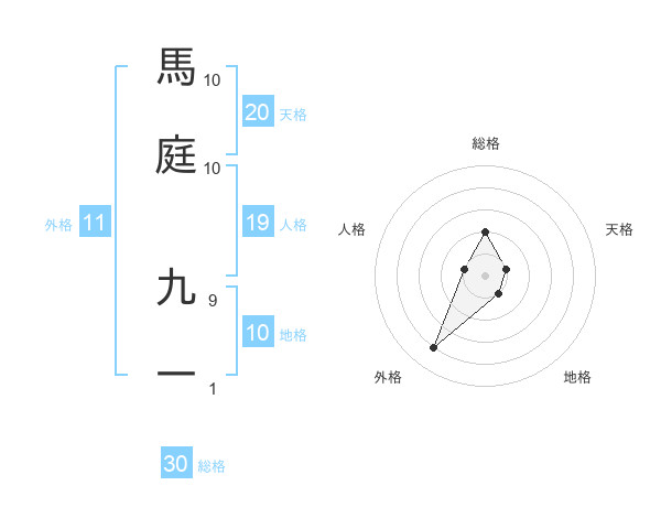 馬庭 九一さんを姓名の画数から五運を鑑定