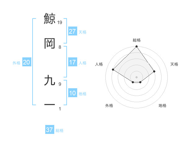 鯨岡 九一さんの総格は37画の5点!