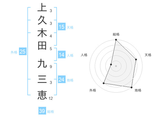 上久木田 九三恵さんの地格は24画の5点!