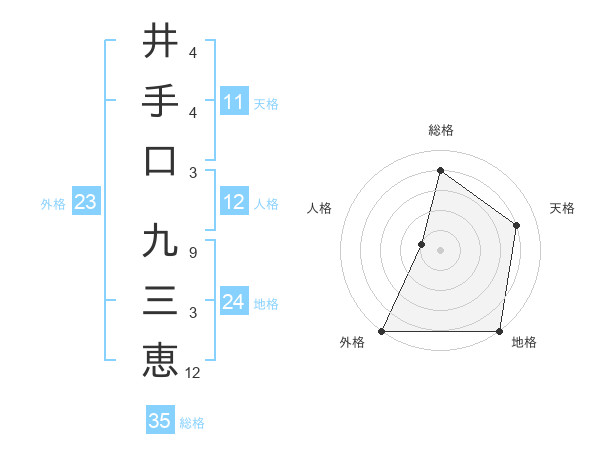 井手口 九三恵さんの総格は35画の4点!
