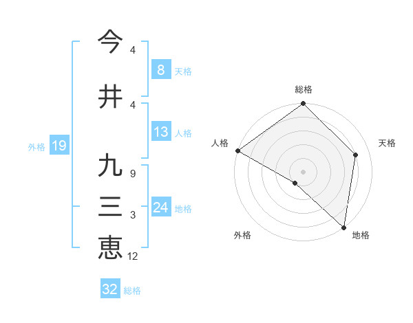 今井 九三恵さんを姓名の画数から五運を鑑定