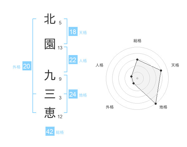 北園 九三恵さんを姓名の画数から五運を鑑定