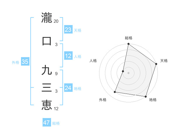 瀧口 九三恵さんを姓名の画数から五運を鑑定