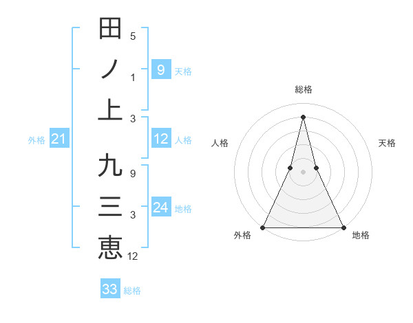 田ノ上 九三恵さんを姓名の画数から五運を鑑定