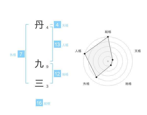 丹 九三さんの外格は7画の4点!