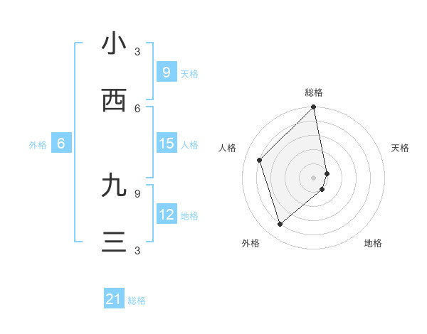 小西 九三さんの総格は21画の5点!