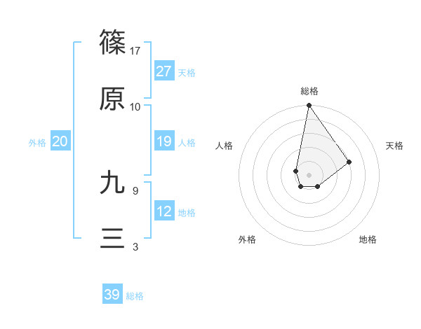篠原 九三さんの天格は27画の3点!