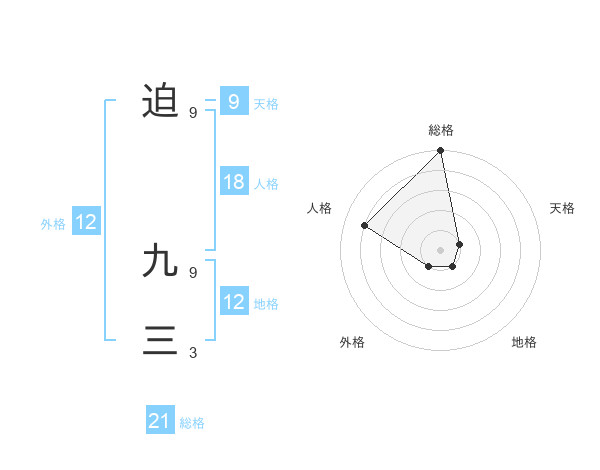迫 九三さんの総格は21画の5点!