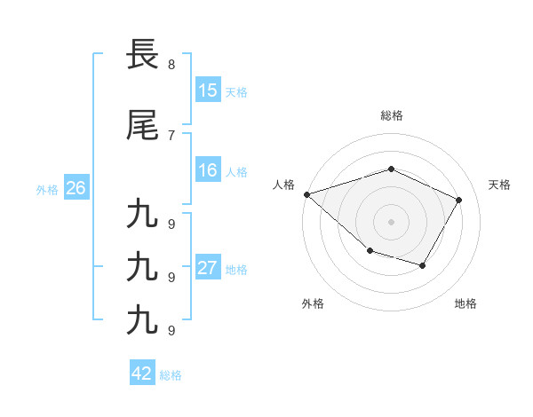 長尾 九九九さんを姓名の画数から五運を鑑定