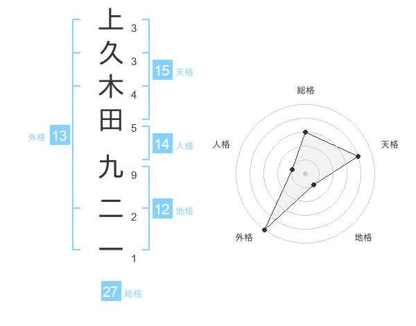 上久木田 九二一さんの総格は27画の3点