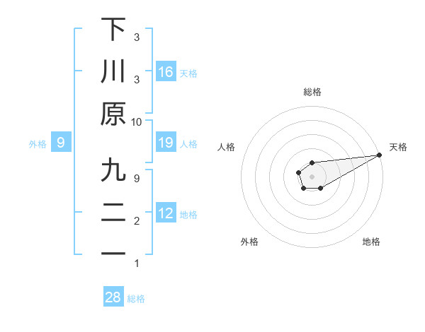 下川原 九二一さんの天格は16画の5点!