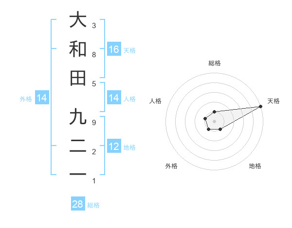 大和田 九二一さんを姓名の画数から五運を鑑定