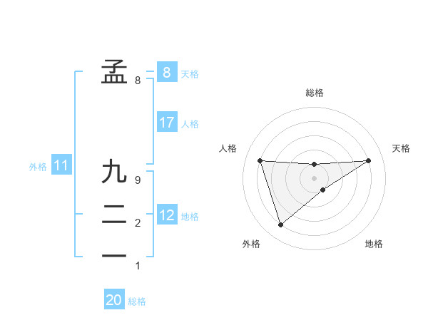 孟 九二一さんの天格は8画の4点!