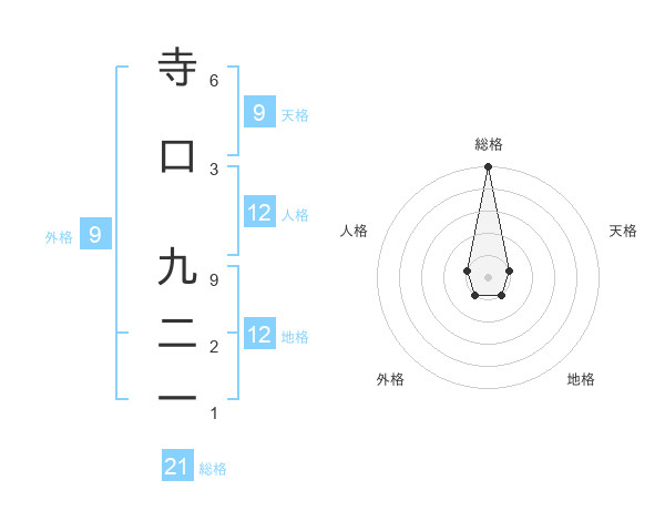 寺口 九二一さんを姓名の画数から五運を鑑定