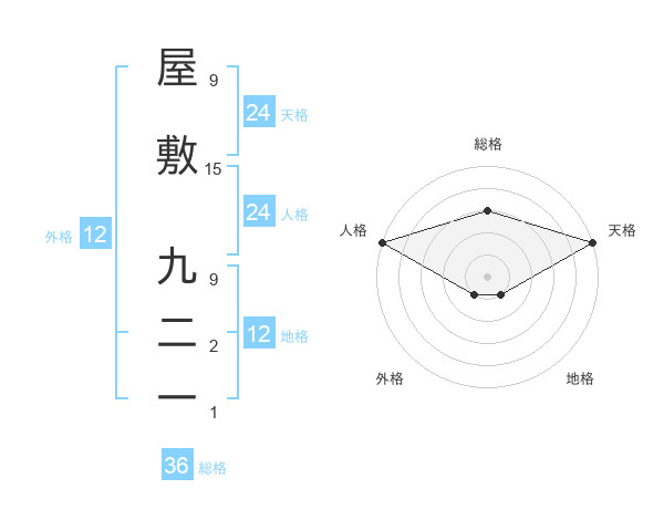 屋敷 九二一さんを姓名の画数から五運を鑑定