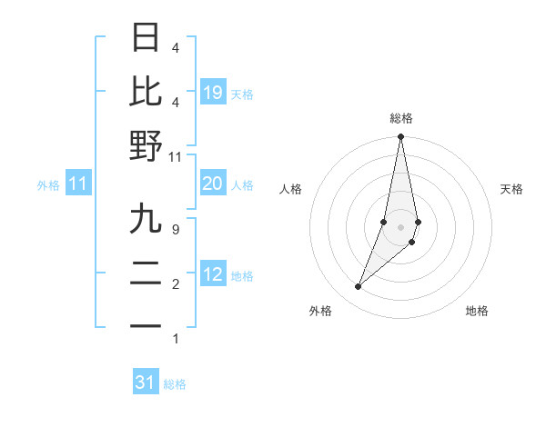 日比野 九二一さんの天格は19画の1点!
