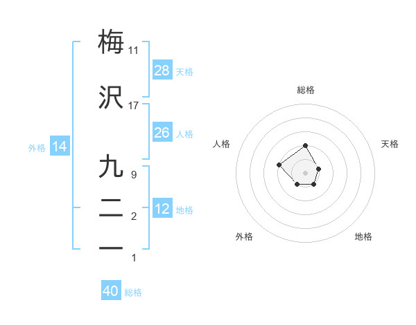 梅沢 九二一さんを姓名の画数から五運を鑑定