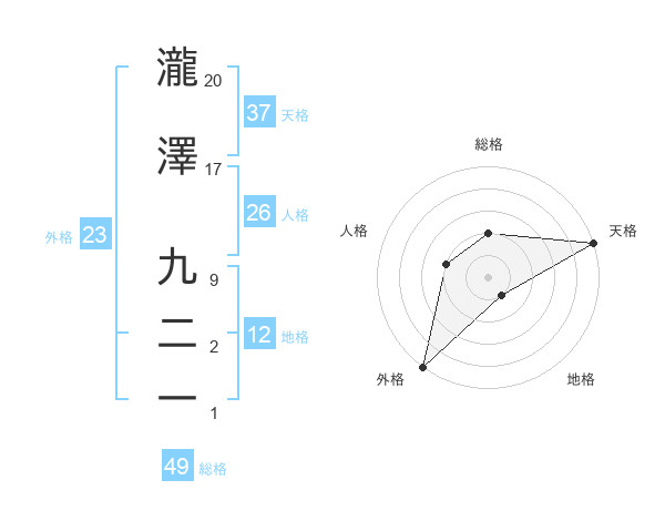 瀧澤 九二一さんの天格は37画の5点!