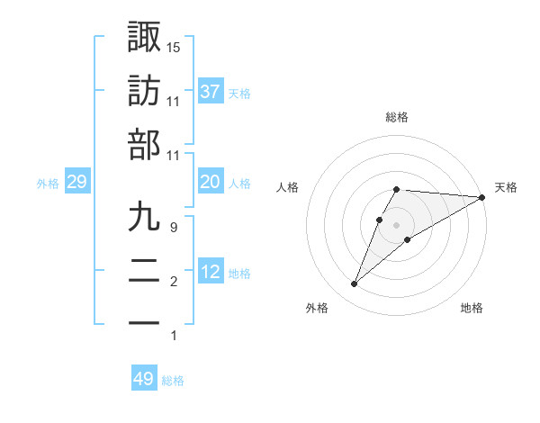 諏訪部 九二一さんを姓名の画数から五運を鑑定