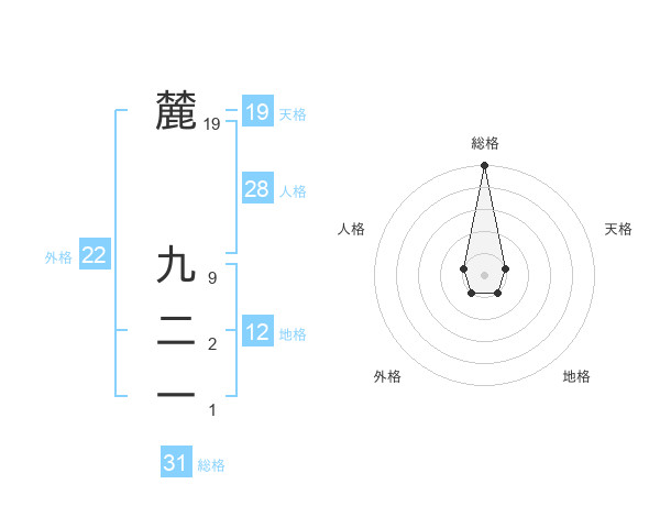 麓 九二一さんの総格は31画の5点!