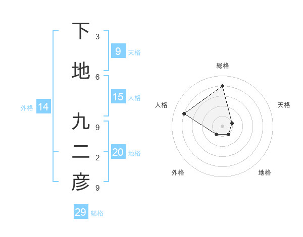 下地 九二彦さんを姓名の画数から五運を鑑定