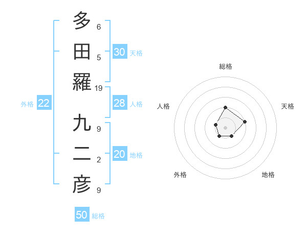 多田羅 九二彦さんの総格は50画の2点!