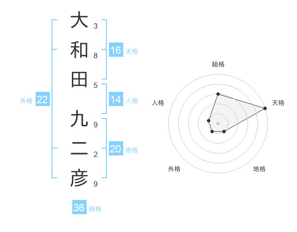 大和田 九二彦さんを姓名の画数から五運を鑑定