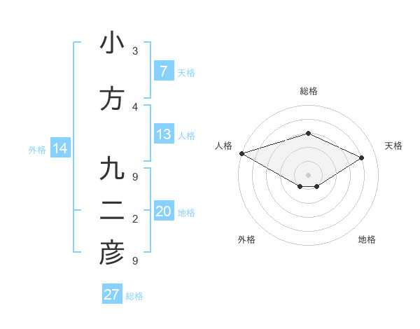 小方 九二彦さんを姓名の画数から五運を鑑定