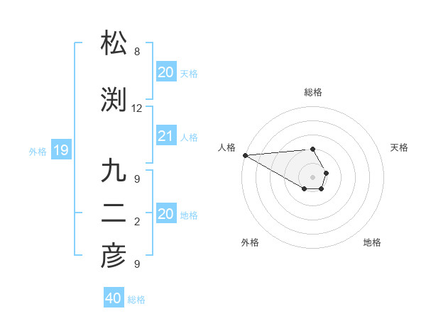 松渕 九二彦さんの天格は20画の1点!