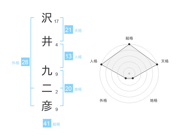 沢井 九二彦さんを姓名の画数から五運を鑑定