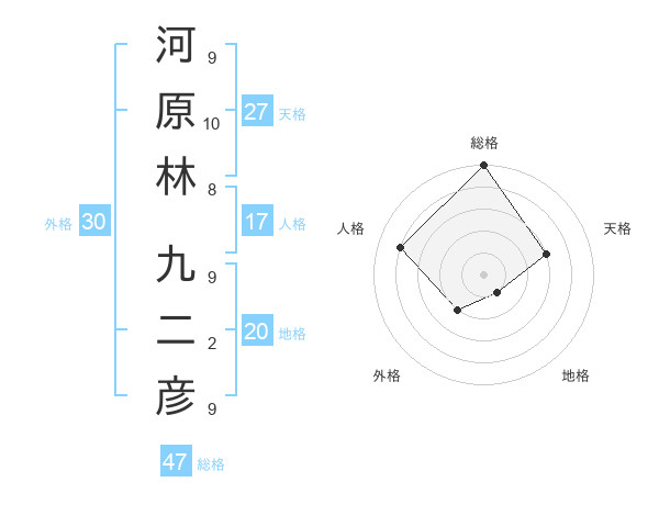 河原林 九二彦さんを姓名の画数から五運を鑑定