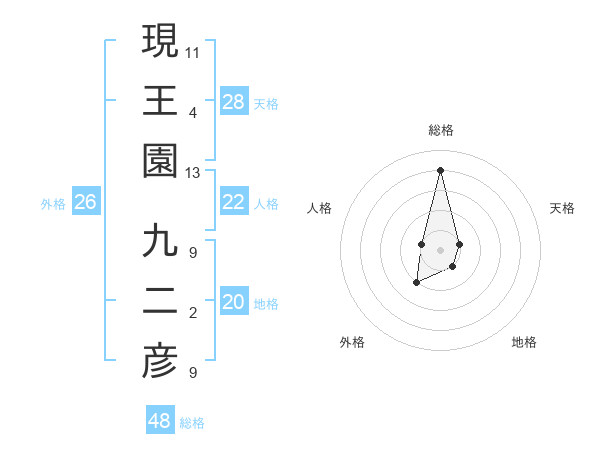 現王園 九二彦さんを姓名の画数から五運を鑑定