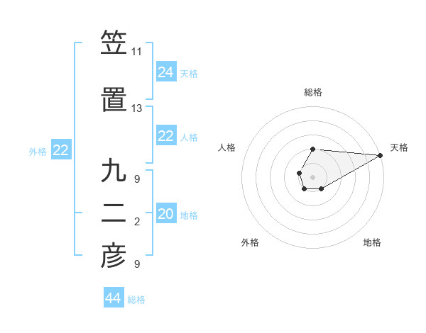 笠置 九二彦さんを姓名の画数から五運を鑑定